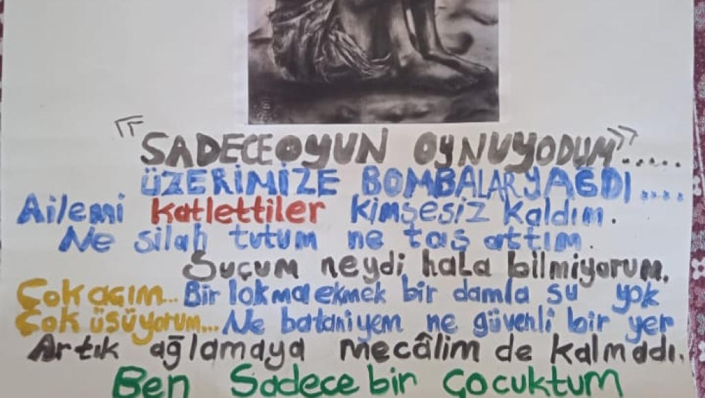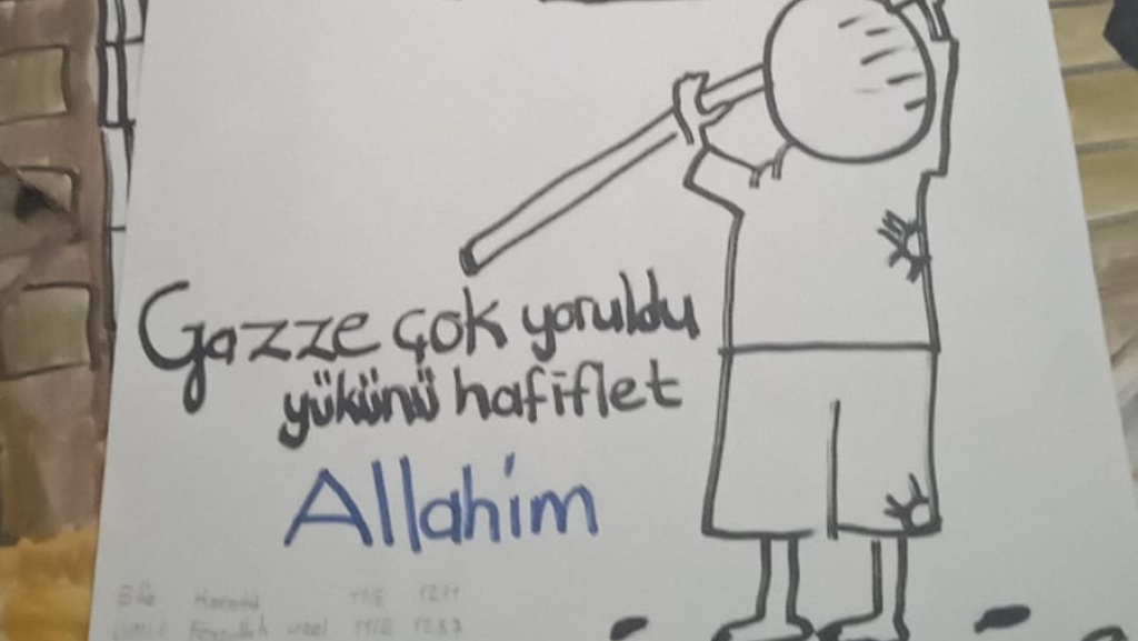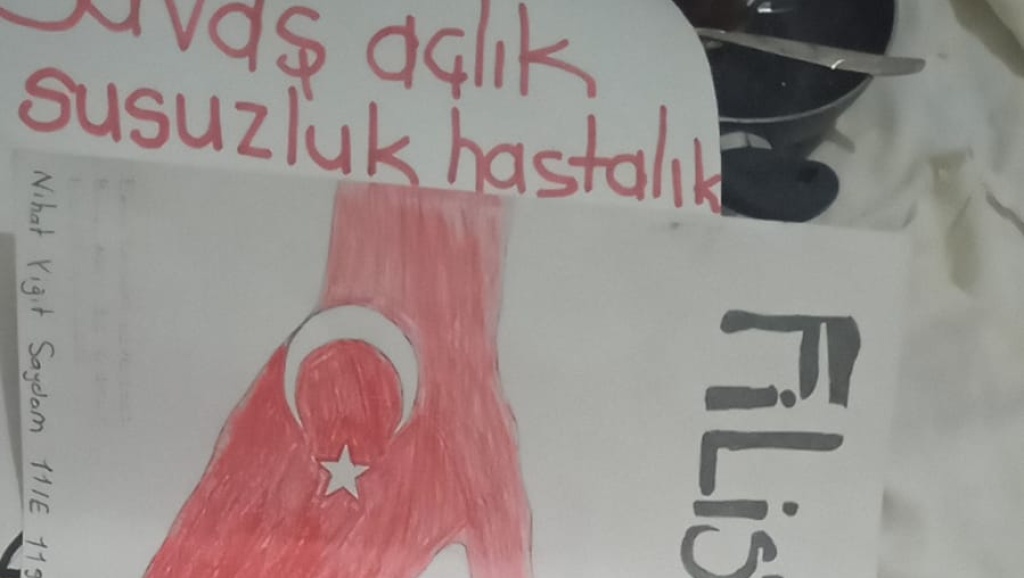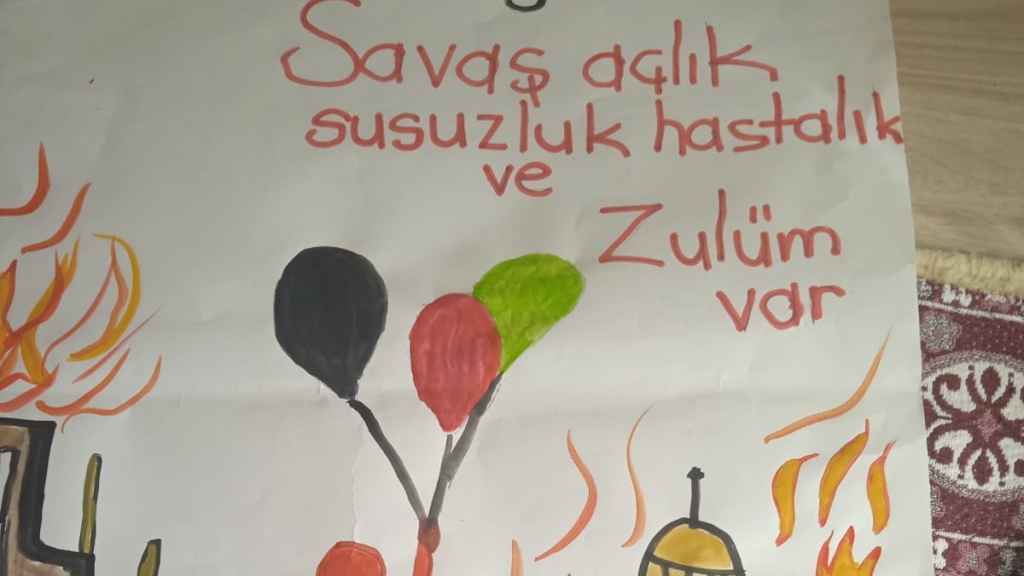Etkinlik kapsamında öğrenciler, Filistin halkına destek olmak ve zulme dikkat çekmek amacıyla duygu yüklü afişler hazırladı. Okul panolarına asılan bu çalışmalar, “Filistin’in umudu bitmez”, “Savaş, açlık, susuzluk, hastalık ve zulüm var”, “Özgür Filistin” ve “Ben sadece bir çocuktum” gibi ifadelerle vicdanlara dokundu. Afişlerde Gazze’deki çocukların yaşadığı acılara, yıkıma ve insani dramın boyutlarına dikkat çekildi.
