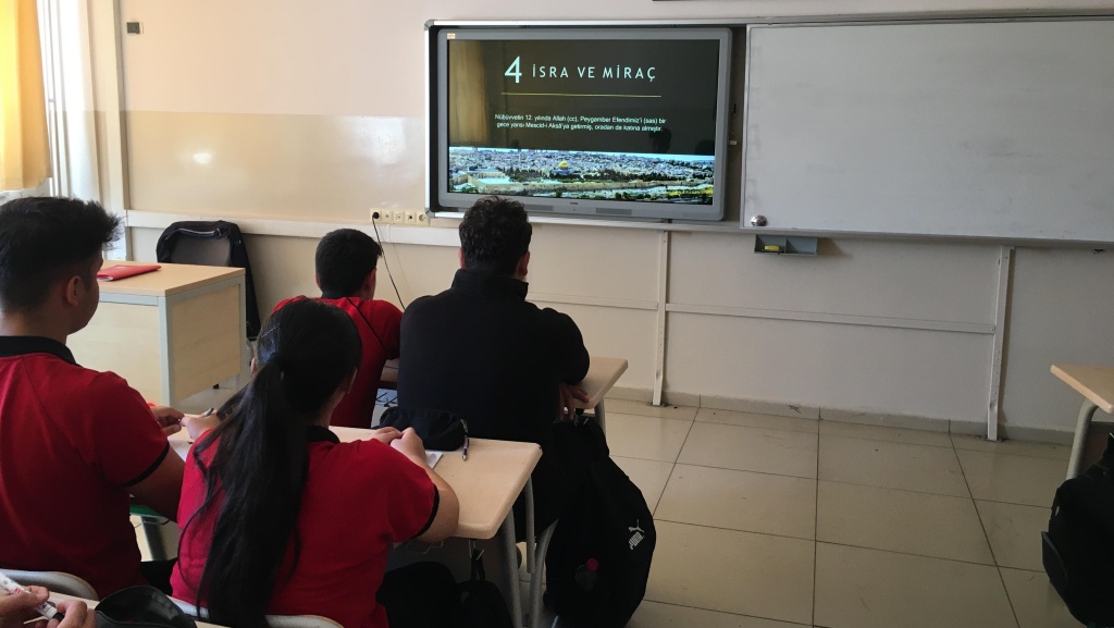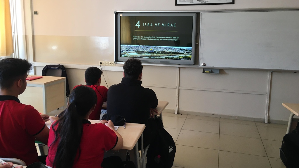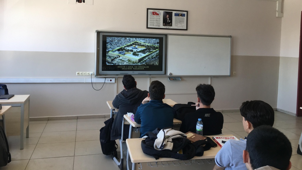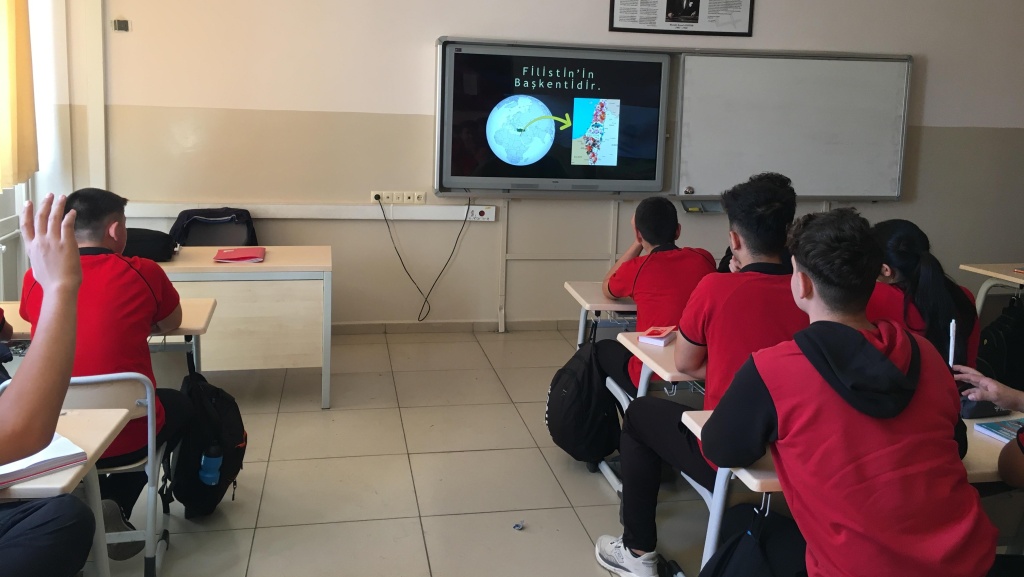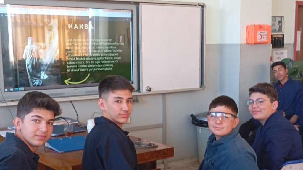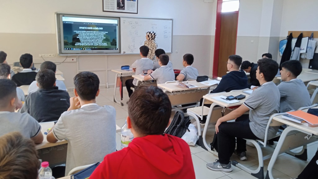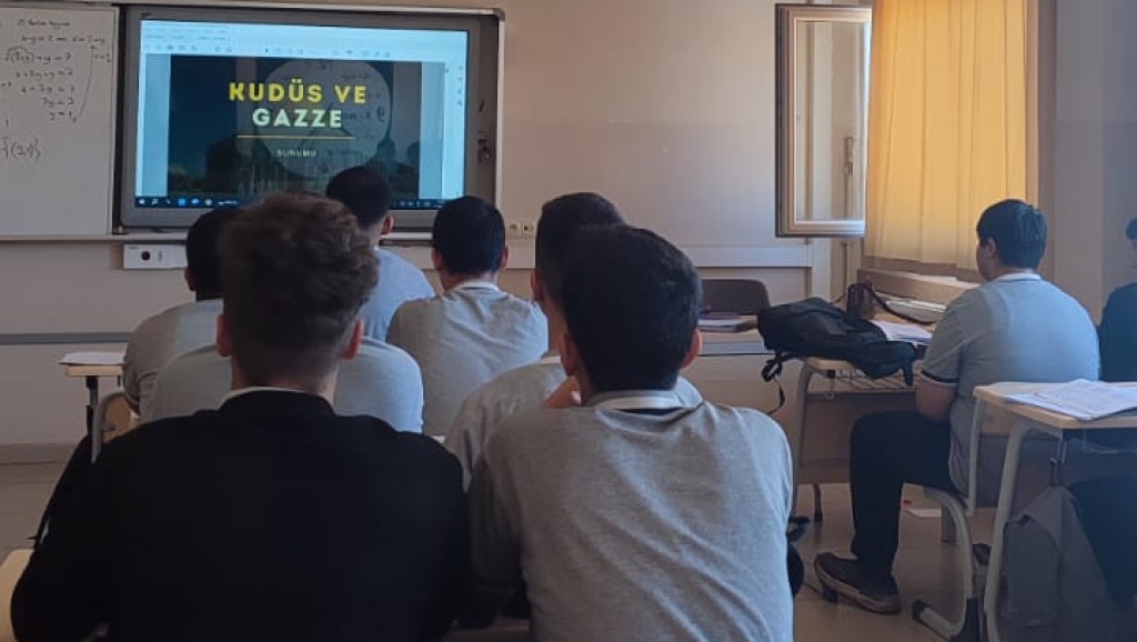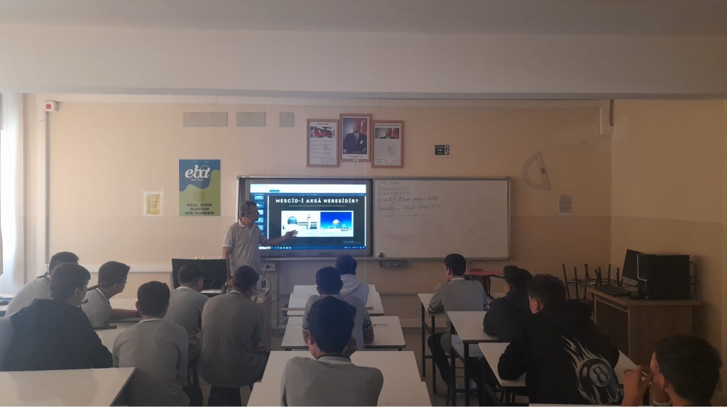 Derslerde öğretmenler, “Kudüs ve Gazze” temalı sunumlarla öğrencilere bölgenin tarihi, Mescid-i Aksa’nın önemi ve Filistin halkının yaşadığı zorluklar hakkında bilgiler verdi. Akıllı tahta üzerinden yapılan görsel sunumlarda öğrenciler, Filistin topraklarının yıllar içinde uğradığı işgali gösteren haritalar eşliğinde konuyu dikkatle takip etti.